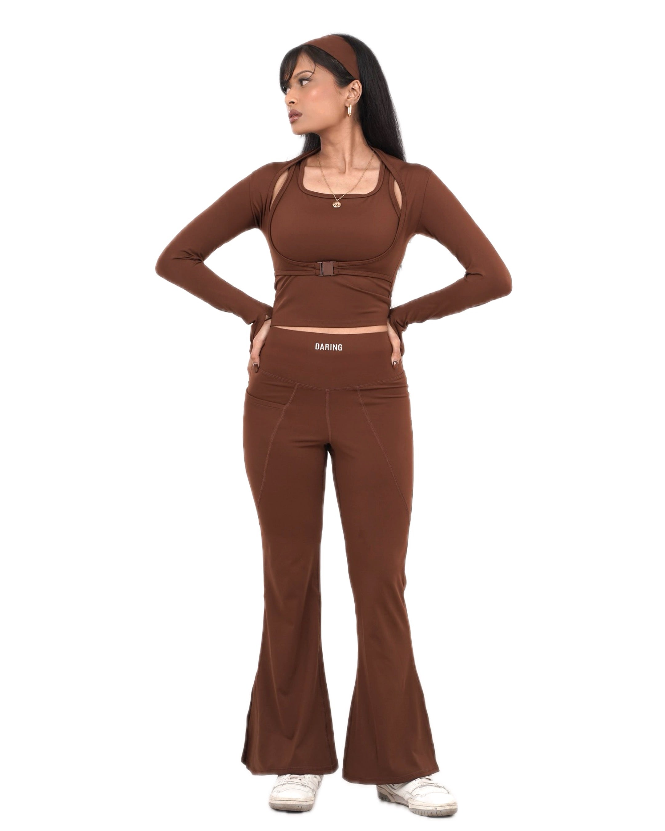 IT’S ICONIC FOR A REASON. THIS FAUX-LAYERED HALTER TOP FEATURES CONNECTED SLEEVES, A SHARP STRUCTURE, AND A BUILT-IN ATTITUDE. DESIGNED TO LOOK LAYERED, BUT MOVE AS ONE - THIS PIECE BRINGS EDGE, FUNCTION, AND STYLE INTO PERFECT ALIGNMENT.