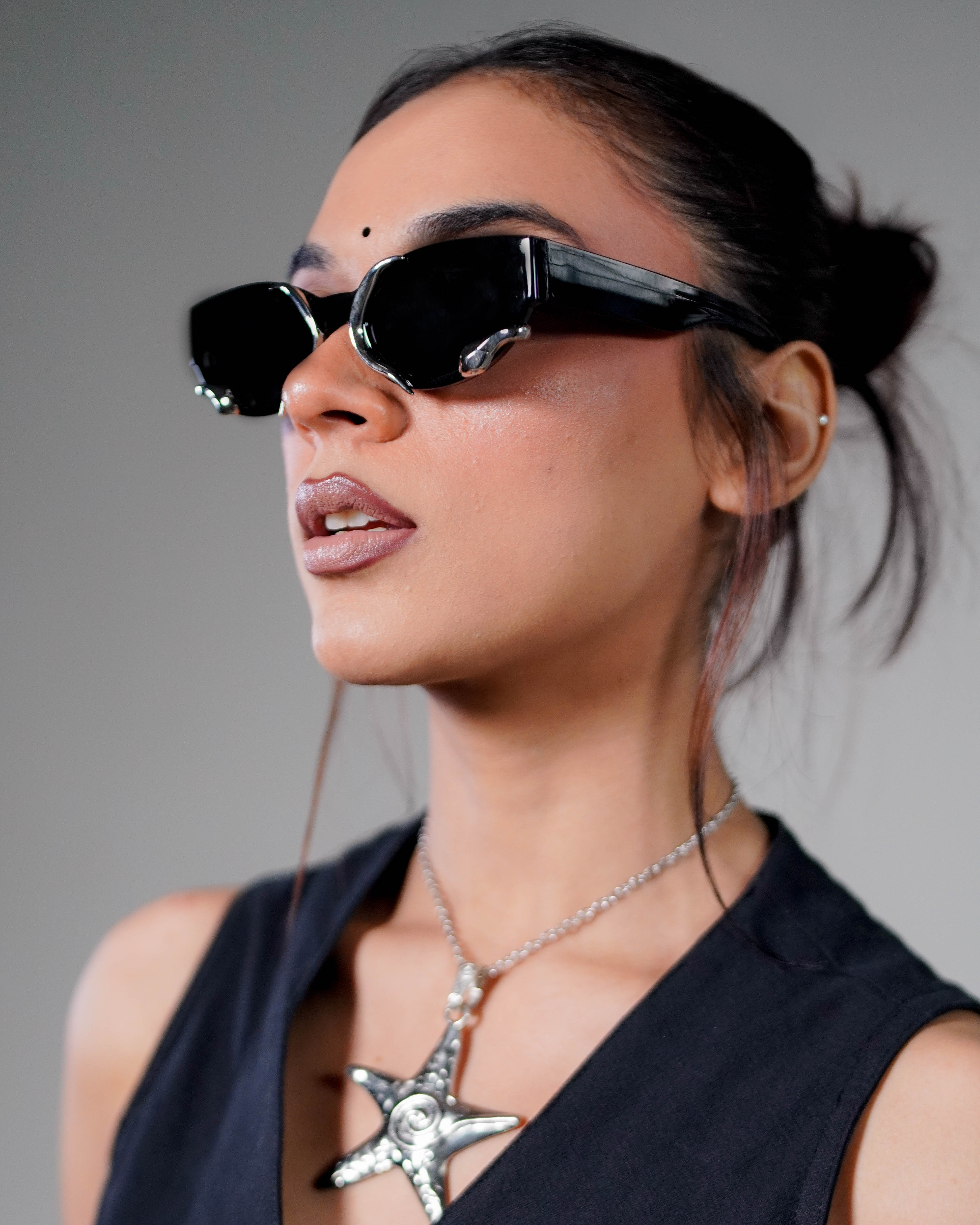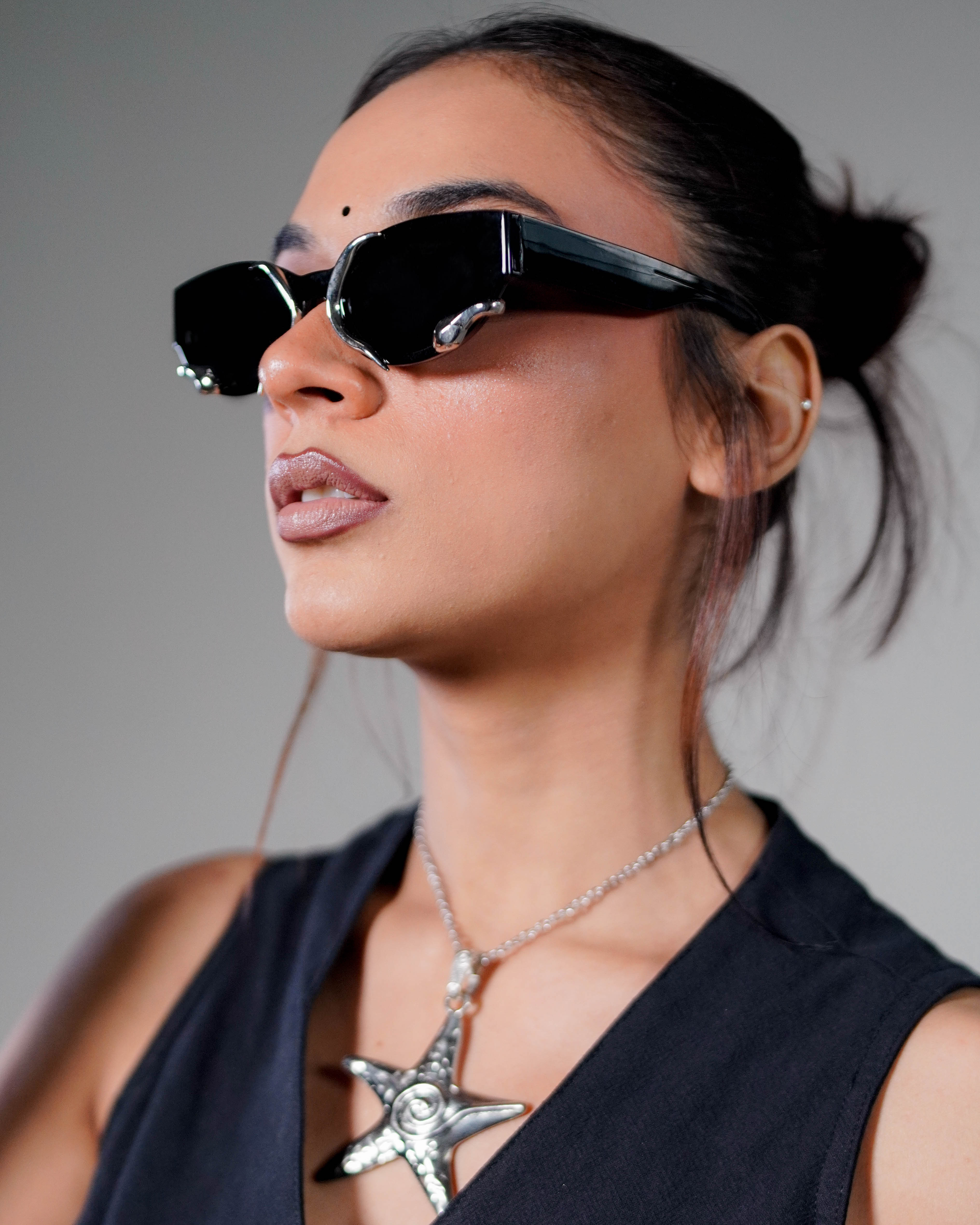 A sea-star silhouette with a twist. This statement necklace features a hammered, silver-toned star pendant finished with a coiled spiral at the center, giving it that raw, sculptural shine. It’s bold without being loud, and sits perfectly with deep necklines, simple tees, or layered chains when you want the pendant to lead.