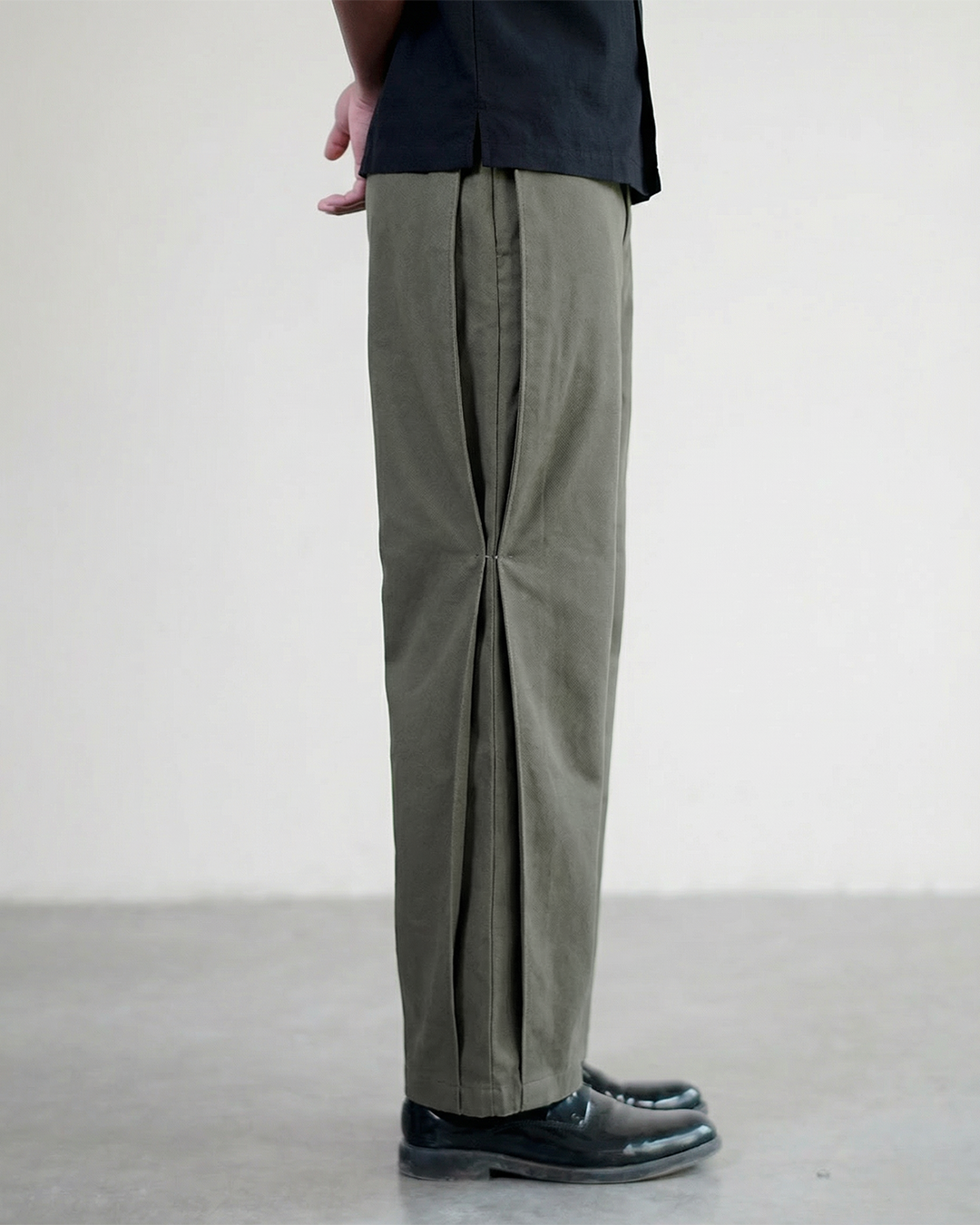 You have never seen pants like this before. Inspired by the juxtaposition of the Dhoti, and Classic Menswear. Adjustable pants with snapbuttons to alter between a classic look, and a more streetfriendly dhoti look. Wear them as you wish, adjust as you go. 100% Cotton. Iron before wear